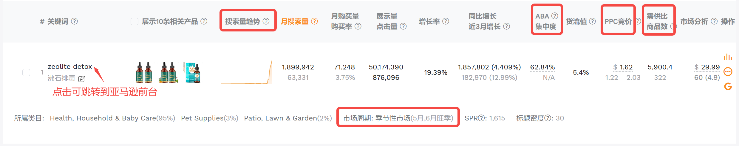 搜索量:指产品核心关键词的月搜索量