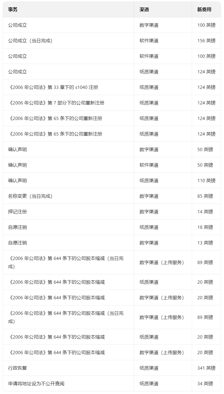 英国公司注册处每年都会审查他们的费用,以确保它们设定在合适的水平,并反映提供服务的成本。