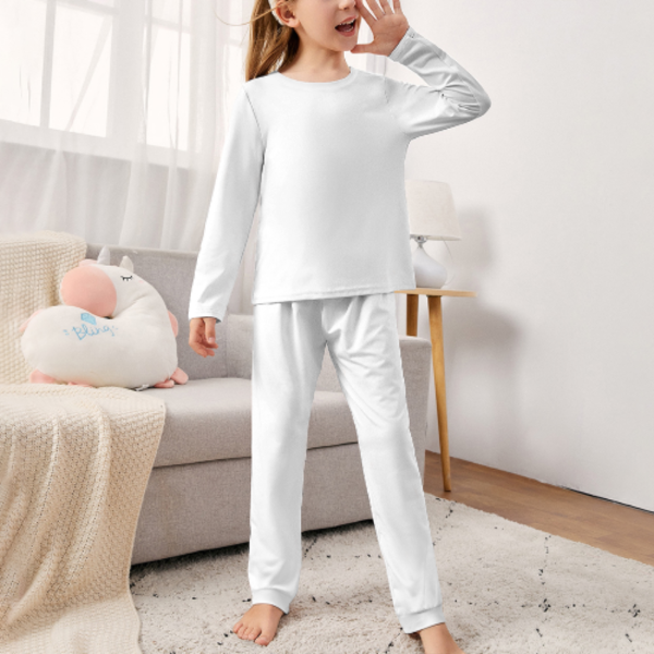 睡衣风格:这款睡衣两件套包括一件舒适的圆领长袖上衣和一条长裤。两者都可以设计简单的图案和风格。
