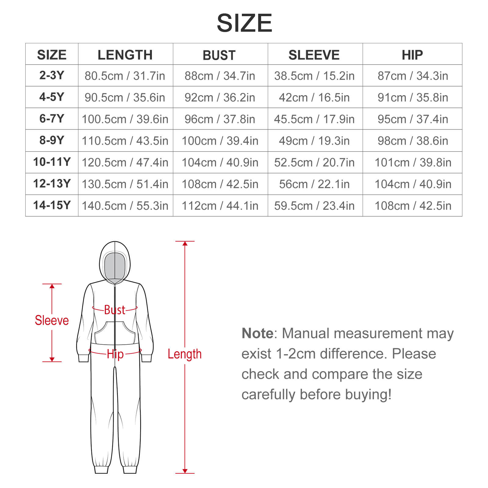 | 8-9Y | 110.5cm/43.5in | 100cm/39.4in | 49cm/19.3in | 98cm/38.6in |