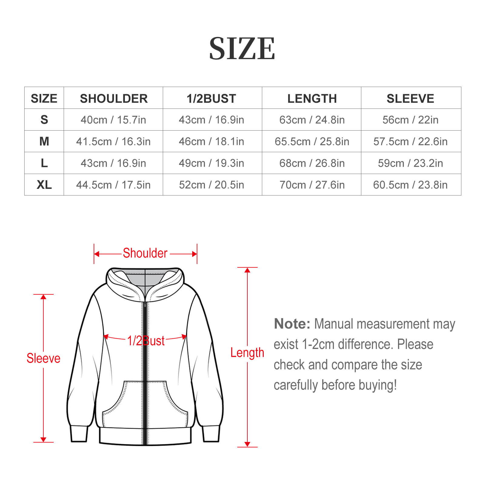 尺码 | 肩宽 (cm/in) | 1/2胸围 (cm/in) | 衣长 (cm/in) | 袖长(cm/in) |